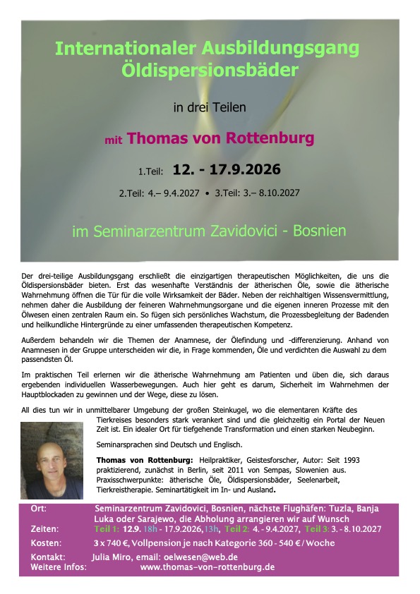Anmeldung bei Julia Miro – oelwesen@web.de – für ein Webinar (2 Abende) Beitrag: 90 € – inkl. Ölprobe